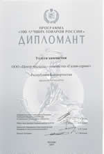 - дипломант программы "100 лучших товаров России" в номинации "Услуги по химической чистке"